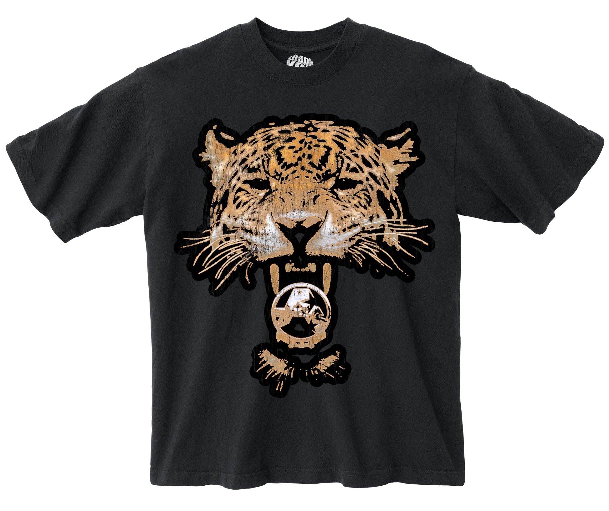 Made in USA. 100% cotton with Direct To Fabric print on center chest and center of back of 6.5oz garment dyed t shirt. Does not shrink after wash and has a oversized fit.