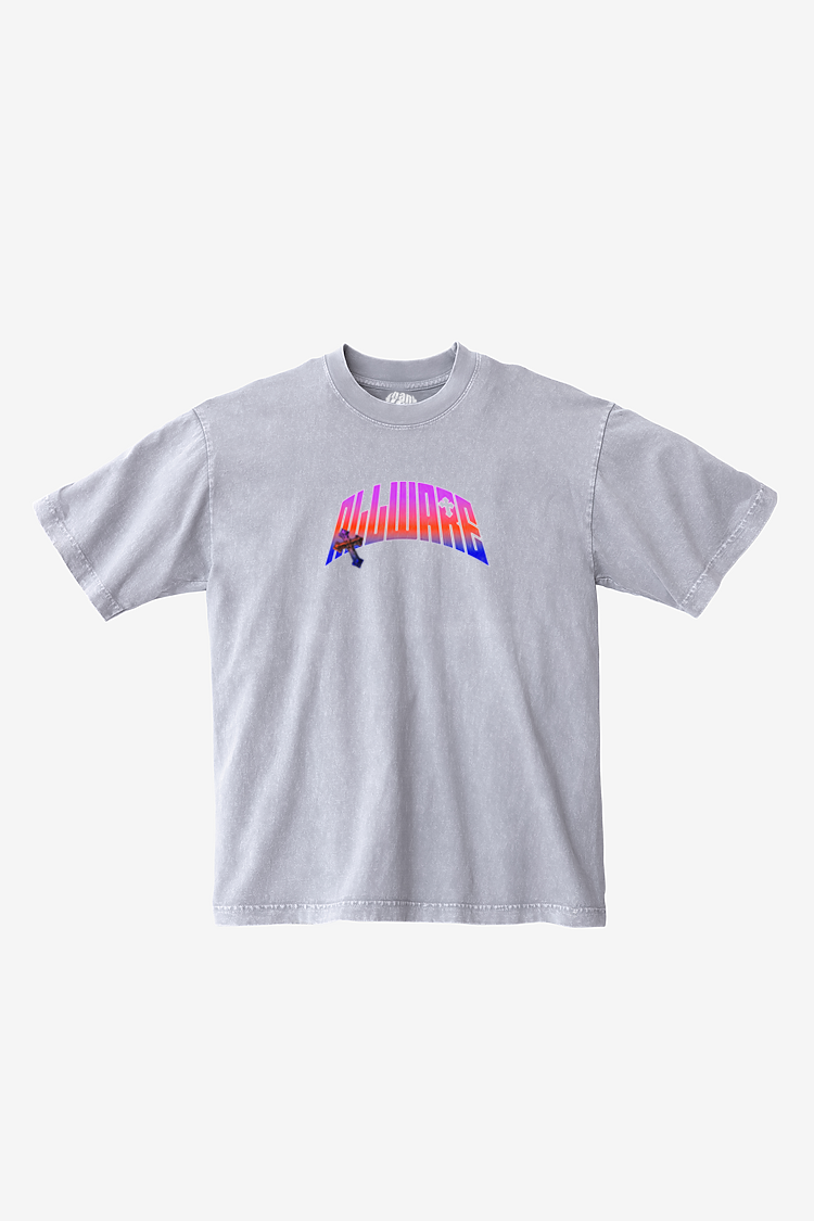 Made in USA. 100% cotton with a Direct To Fabric print on center chest and center of back of 6.5oz garment dyed t shirt. Does not shrink after wash and has a oversized fit.
